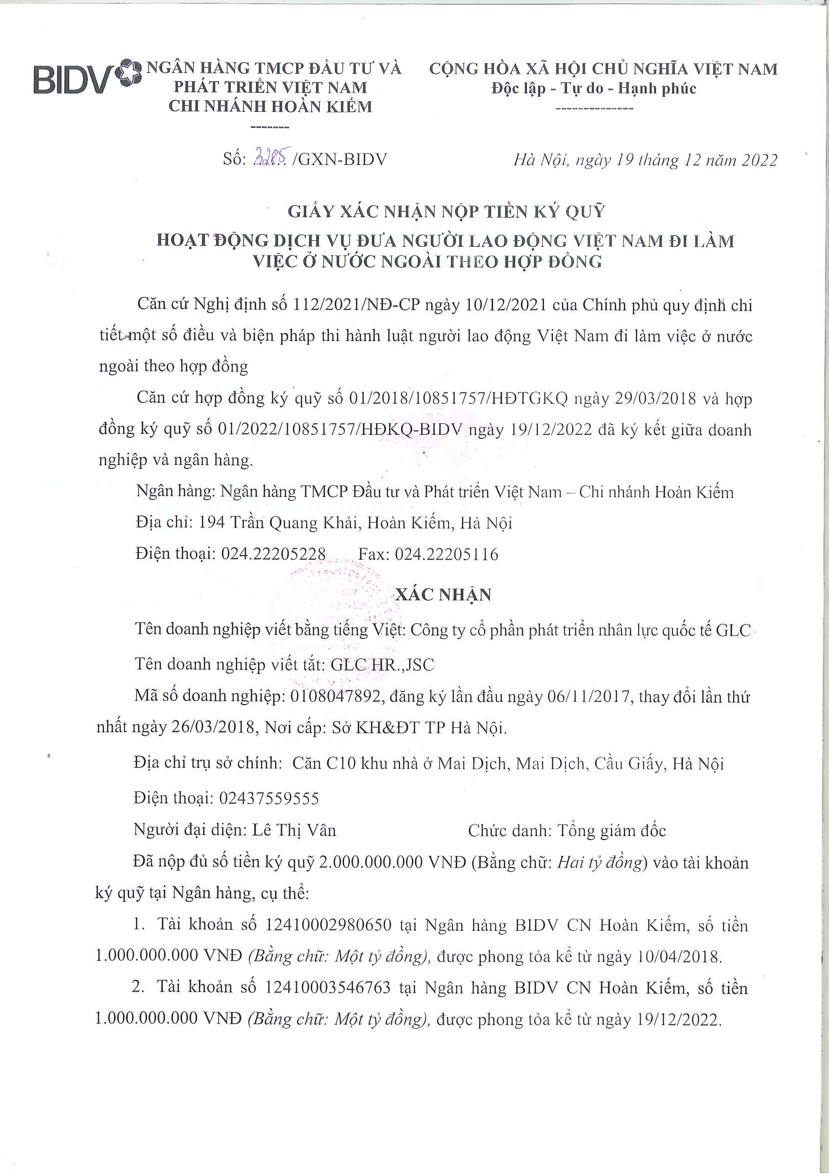 Tên công ty: CÔNG TY CỔ PHẦN PHÁT TRIỂN NHÂN LỰC QUỐC TẾ GLC